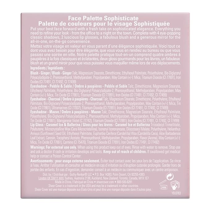 Sheer Cover – Sophisticate Look Face Palette For Eyes, Lips, and Cheeks – with Brush