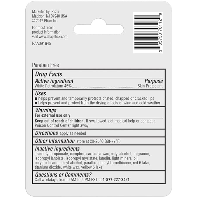 - One pack of 0.15-ounce ChapStick Classic Original Lip Balm, Lip Balm Tubes, Skin Protectant and Chapped Lip Treatment