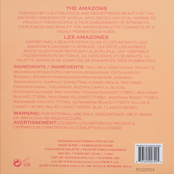 Juvia's Place Warrior 2 Eyeshadow Palette - Professional Eye Makeup, Pigmented Eyeshadow Palette, Makeup Palette for Eye Color & Shine, Pressed Eyeshadow Cosmetics