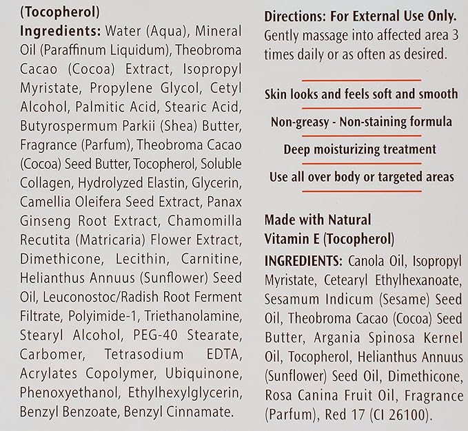- Natural Factors: A luxurious combination of cocoa and shea butters, Vitamin E, coconut, argan and almond oils help soften and smooth skin, assist moisture retention, improve hydration and support healthy skin