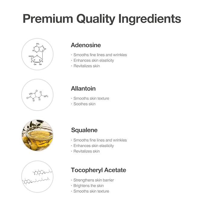 - 💧 EYE CREAM: This is a complete eye care cream for aging skin. A rich, fast-absorbing eye care cream developed in Korea targets five types of wrinkles that appear around the delicate eye area, including lid creases, crow’s feet, and fine lines caused by puffiness.