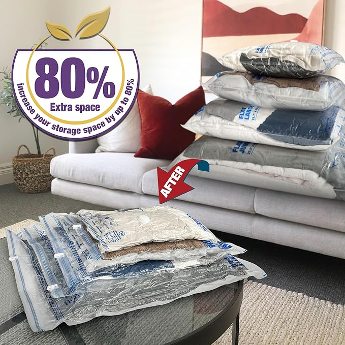- Water-proof vacuum bags: our products manufactured under the strictest quality control standards and using the safest material, and don’t worry about the long-term effects of storage in the compression bags.