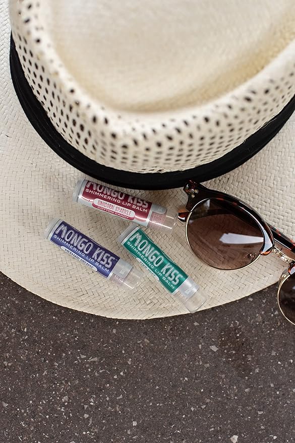 Mongo Kiss Shimmering Lip Balms (6 tubes, 2 packs) by Eco Lips 100% Natural Lip Balms featuring Organic Mongongo Oil, Cotton Candy, Sherbet and Blueberry Pie flavors - Made in USA.