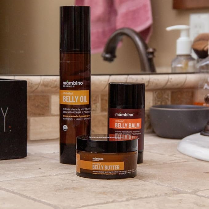 Mambino Organics Oh Baby! Belly Oil – Organic Elasticity Serum with Egyptian Calendula, Vietnamese Tamanu & Dutch Shea – Pregnancy Oil for Stretch Marks – Vegan Cruelty-Free Maternity Care, 2 fl oz