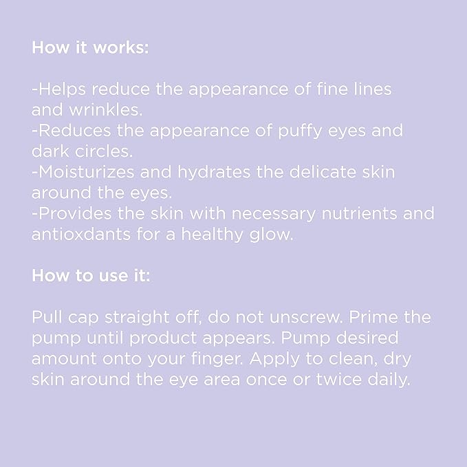 - It helps decrease the appearance of wrinkles, puffiness and dark cirlces around the eyes.
