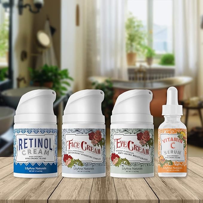 - 4 Piece Skincare Gift Set: This skin care set includes 4 LilyAna Naturals skin care products that come in a giftable box perfect to nourish skin during the harsh winter months. Included in this skin care kit are our top 4 facial skin care routine products: Retinol Cream, Vitamin C Serum, Eye Cream and Face Cream