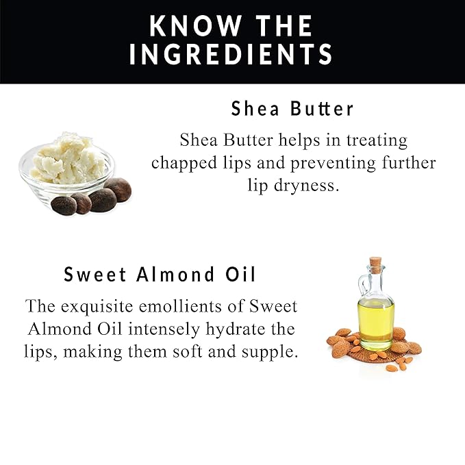 - 100% CERTIFIED ORGANIC INGREDIENTS: Shea Butter for Deeply Moisturized Lips making lips soft; Almond Oil for Intense Nourishment & Treatment that Protects Lips from Harmful effects; Castor Oil for Lip Protection; Banana Extract for Natural Flavor and Aroma; Top Lip balm for Hydration