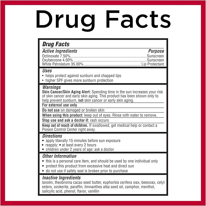 - Multi-purpose hydrating lip balm with sunscreen and lip protectant to help defend against cold, wind and dry weather