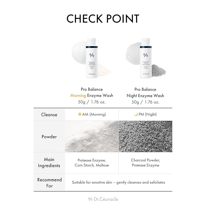 - MORNING ENZYME POWDER: AM face wash powder formulated with gentle enzymes and corn starch powder for effective morning cleansing. This enzyme powder wash removes overnight sebum