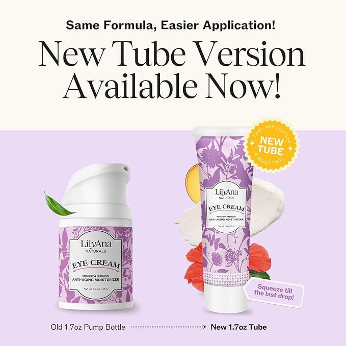 LilyAna Naturals Eye Cream for Dark Circles and Puffiness, Under Eye Cream for Wrinkles and Bags, Anti Aging helps Improve Dryness; for Sensitive Skin (1.7 Ounce, Pack of 2)