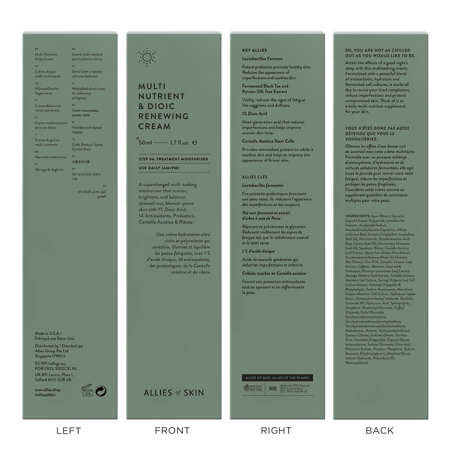 Allies of Skin Multi Nutrient & Dioic Renewing Cream: Moisturizer with Dioic Acid, 14 Antioxidants, Probiotics & Centella Asiatica. Targets Imperfections, Brightens & Protects Skin 1.7 oz / 50 ml