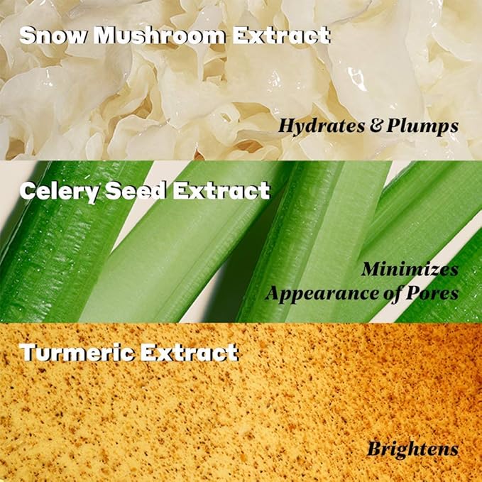 - INGREDIENTS: Celery Seed Extract helps smooth & blur; Snow Mushroom hydrates and helps improve moisture retention.