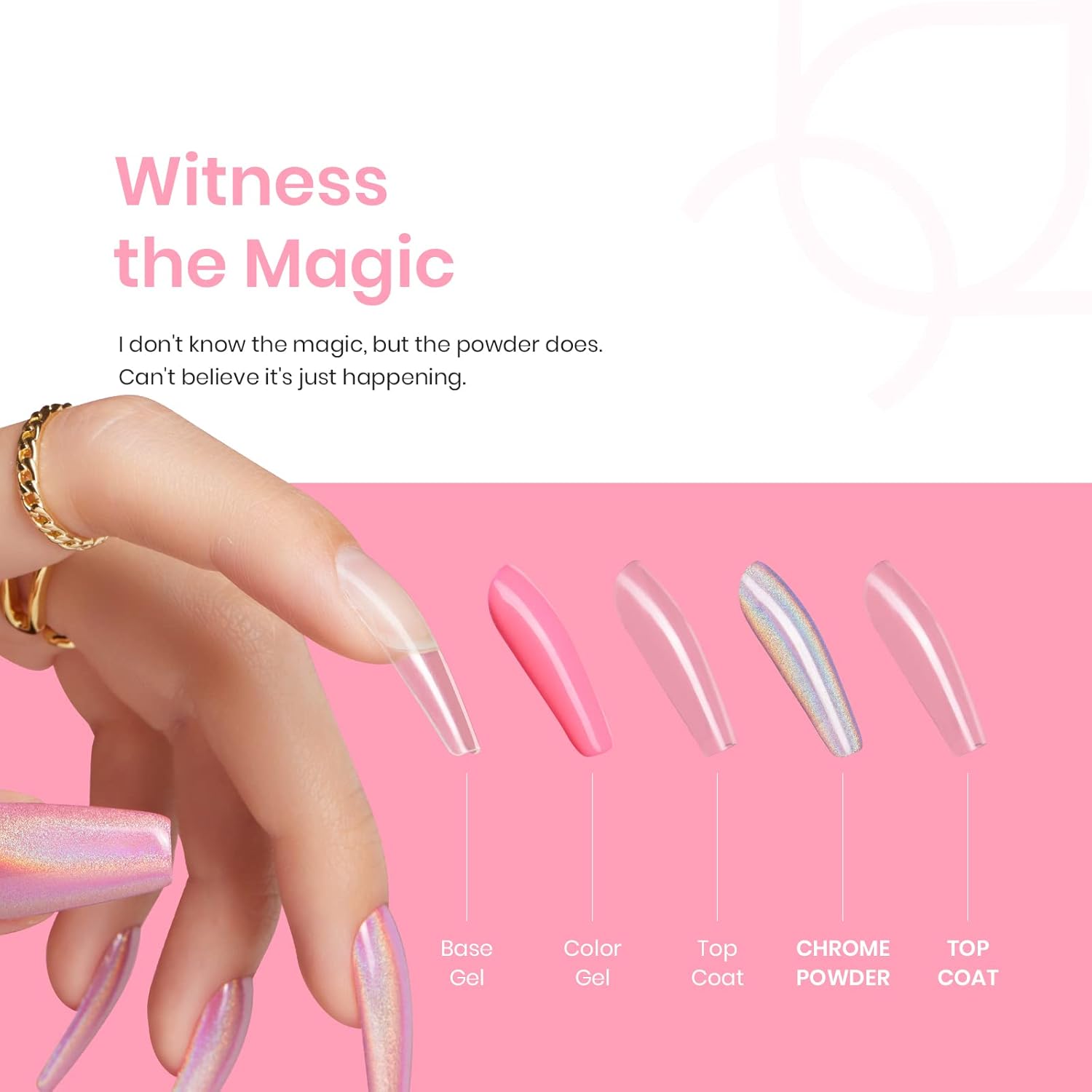 - WIDE APPLICATION: The nail powder is suitable to be applied on UV gel nails, acrylic nails, natural nails, etc., a helpful DIY tool for nail art design. Different polish will give different actual effects. Trying different polish can also bring more fun to you with the chrome holographic nail powder