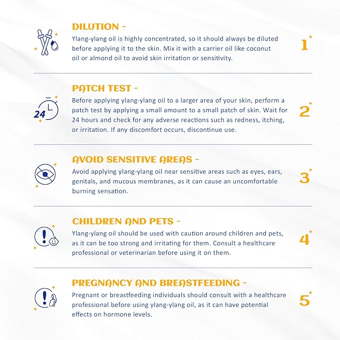 - Body Massage: Mix 2-3 drops of ylang essential oil with every 10 milliliters of a carrier oil (such as sweet almond oil or jojoba oil). Take an appropriate amount of the mixture into your palm and apply it to the desired body area in a circular motion for massage