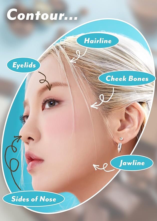 - đź’— HOW TO USE: 1. Hairline: Contour from the temples down to the chin for a slimmer-looking face. 2. Jawline: Contour along and under the jawline for a sculted jaw. 3. Cheekbones: Contour from the temples towards the mouth for defined cheekbones. 4. Sides of nose: Contour from the front of the brows down to the bottom of the nose for a slimmer and higher-looking nose. 5. Eyelids: Contour the eyelids in swiping motions for deeper-looking eyes.