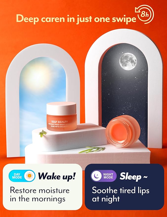 SelfBeauty Lip Mask - Rosehip & Collagen, Vegan Lip Balm, Lip Moisturizer, Overnight Hydrating Lip Treatment with Collagen Peptide, Lip Scrub Exfoliator Intensive Lip Repair, 0.51fl.oz