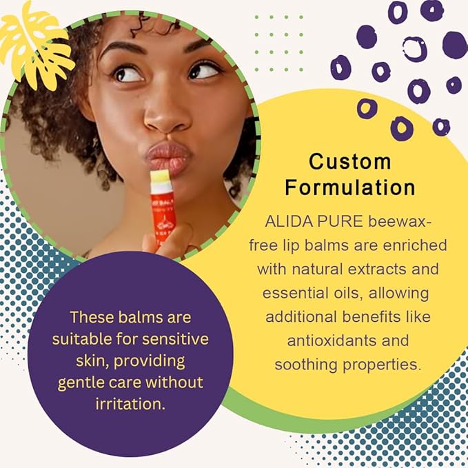 - ALIDA PURE Tangerine Lip Balm Collection, uses avocado oil, and candelilla wax, to protect and nourish. Organic jojoba oil is rich in nutrients, and aids in healing dry chapped skin. Castor oil deeply moisturizes the skin and revitalizes skin cells. With refreshing, zesty tangerine flavor.