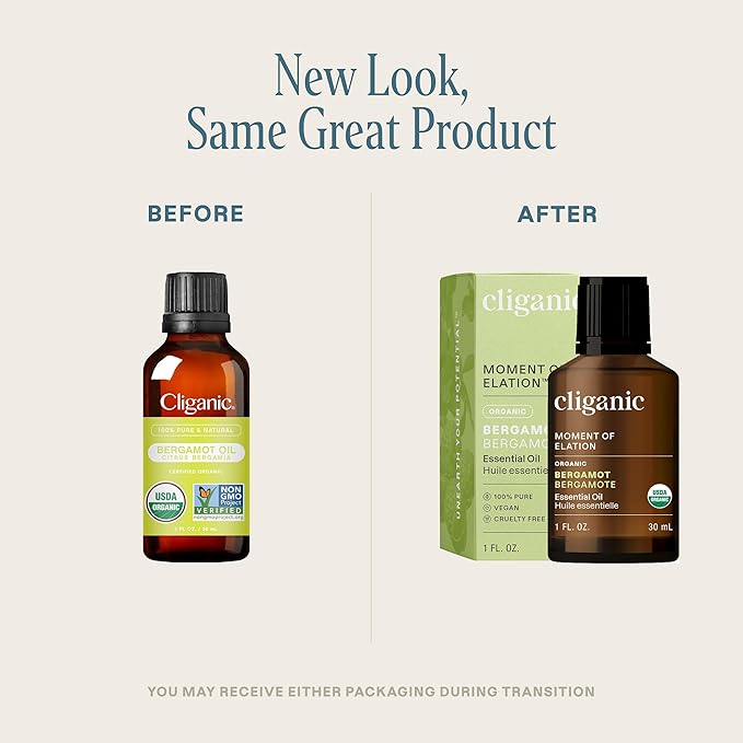 Cliganic Organic Bergamot Essential Oil, 100% Pure Natural for Aromatherapy | Non-GMO Verified (Packaging May Vary)