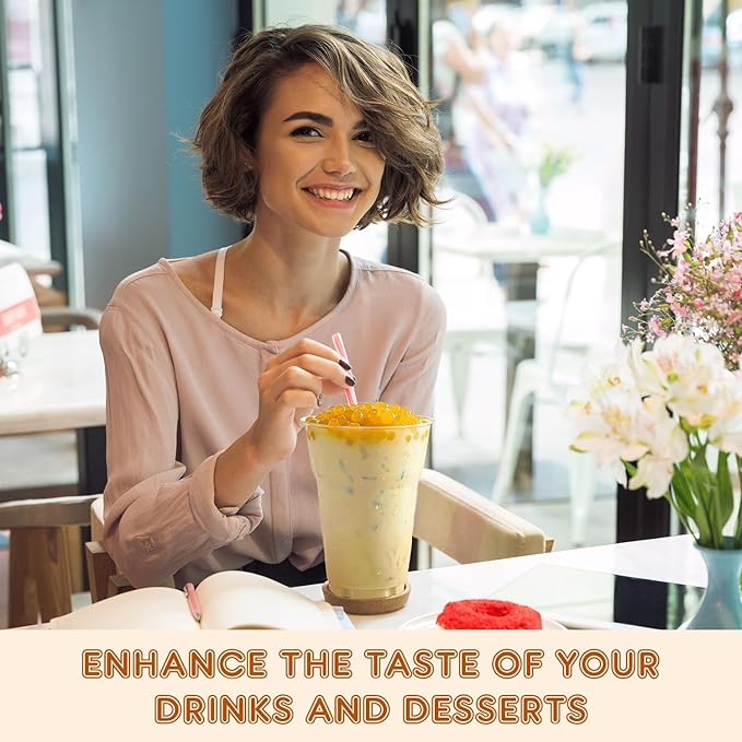 - 𝐄𝐧𝐫𝐢𝐜𝐡𝐞𝐝 𝐖𝐢𝐭𝐡 𝐉𝐮𝐢𝐜𝐲 𝐆𝐨𝐨𝐝𝐧𝐞𝐬𝐬: The fruit boba pearls are filled with natural and organic Lemon goodness. You get a juicy, mouthful taste of Lemon with every bite and slurp of your favorite beverages.