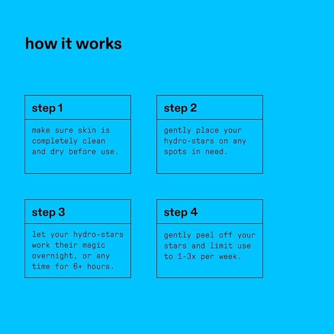 - EASY TO USE: Apply to clean, dry skin (after cleansing + before moisturizing). Leave on overnight (or 6+ hours) and limit use to 1-3x per week. Use a classic Hydro-Star once your spot comes to a head.