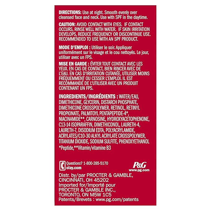- POWERFUL ANTI-AGING INGREDIENTS: Formulated to deliver Olay's Proprietary Retinol Complex, along with Niacinamide, dermatologist-recommended Peptides, and Glycerin, deep into skin's surface for smooth & supple skin.