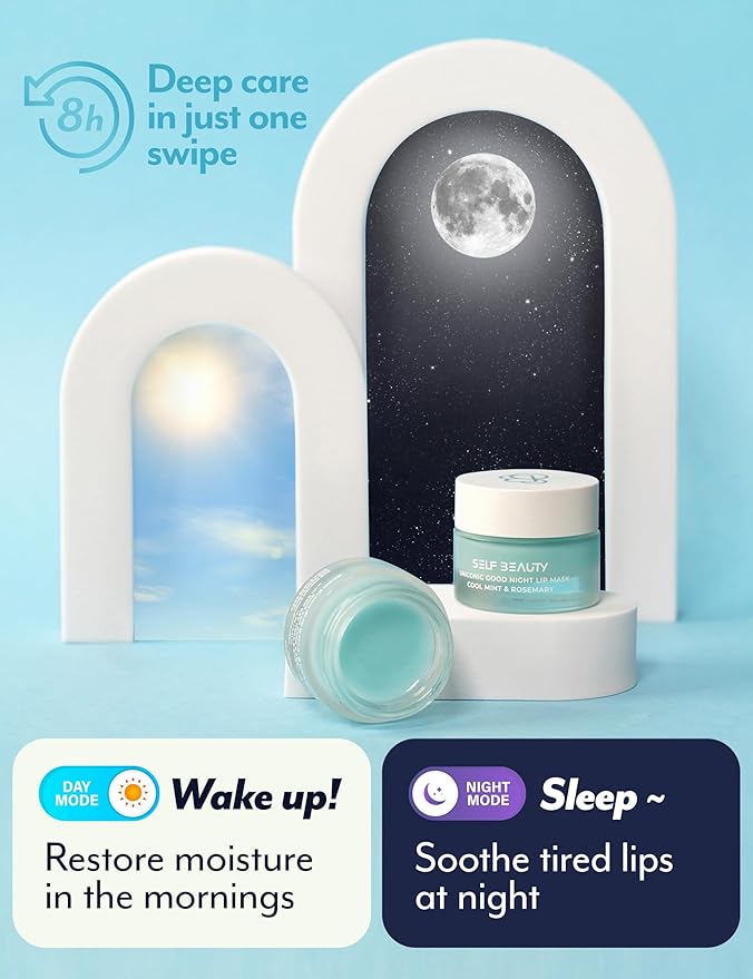 SelfBeauty Lip Mask - Cool Mint Rosemary, Vegan Lip Balm, Daily Lip Moisturizer, Overnight Hydrating Lip Treatment with Cool Mint, Lip Scrub Exfoliator Intensive Lip Repair, 0.51fl.oz