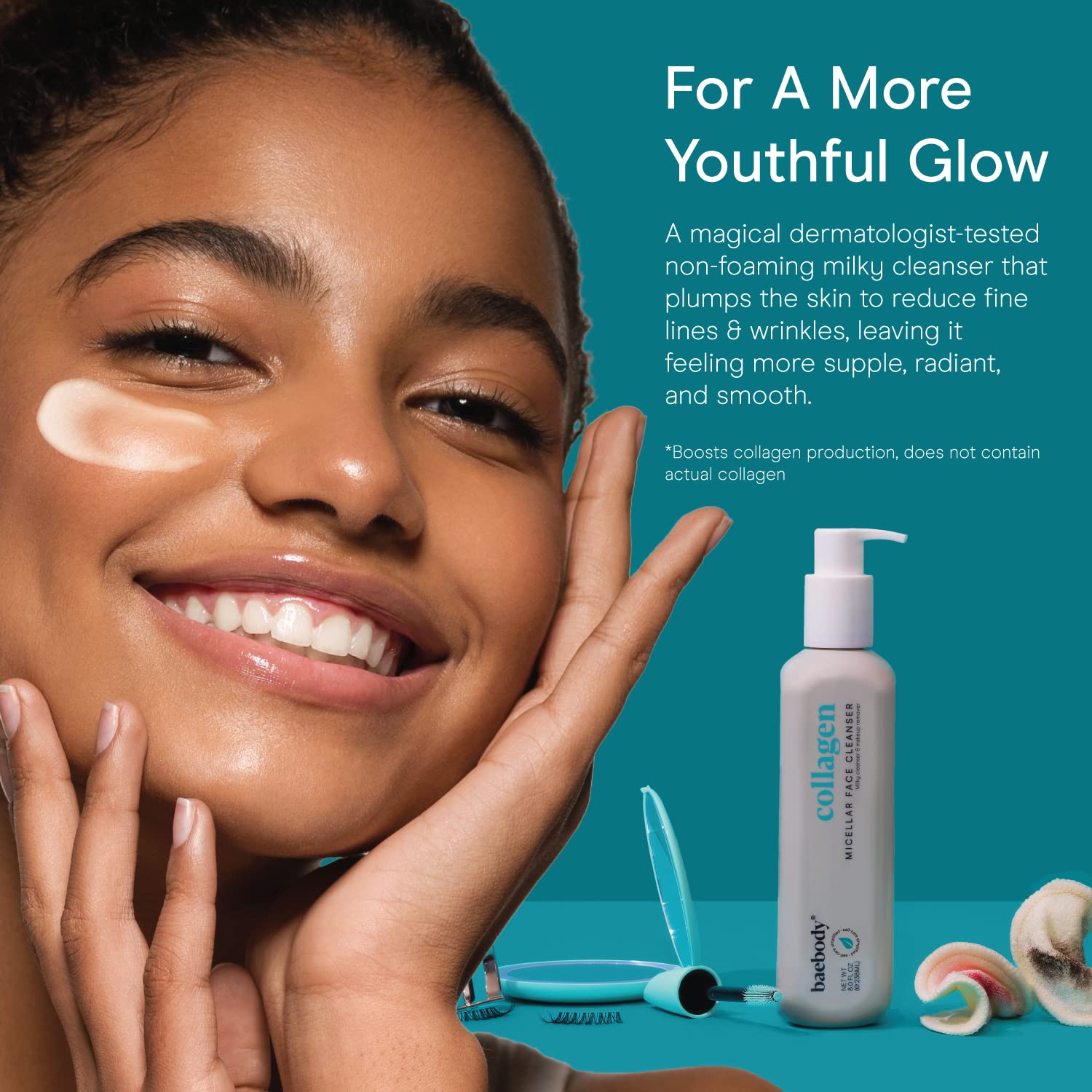 - LOOK YOUNGER WITH OUR MAKEUP REMOVER FACE WASH: Baebody’s micellar water face cleanser is formulated to be gentle enough for sensitive skin, while improving our skin’s elasticity to prevent the appearance of fine lines, sagging skin & wrinkles.