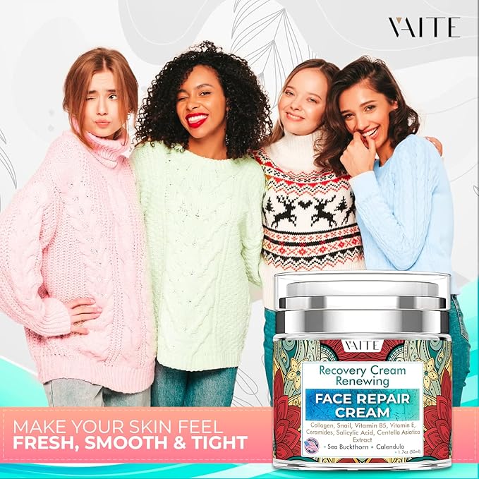 VAITE Face Moisturizer Remedy Skin Repair Cream with Snail, Salicylic Acid, Vitamin B5, Vitamin E, Collagen, and Ceramides for Men and Women Anti-aging Anti-wrinkle Made in USA Night and Day