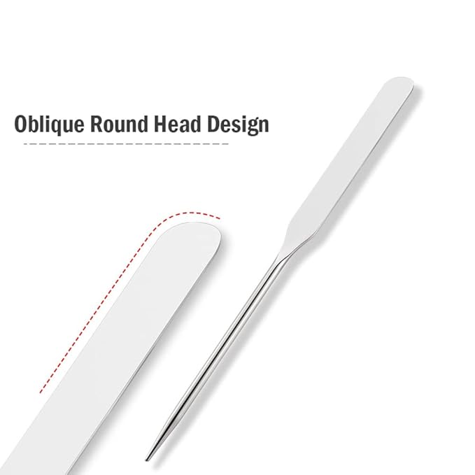 - Stainless Steel Makeup Spatula: The foundation spatula is made of high-quality stainless steel material, oblique round head design. Which is durable, and does not deform.