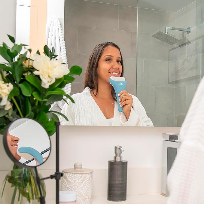 - đź’¦ ERGONOMIC DESIGN FOR EASY HANDLING: Our Ice roller face massager with two interchangeable heads is easy to hold and use; Apply under your eyes for eye puffiness relief, or over your face to reduce redness and pores