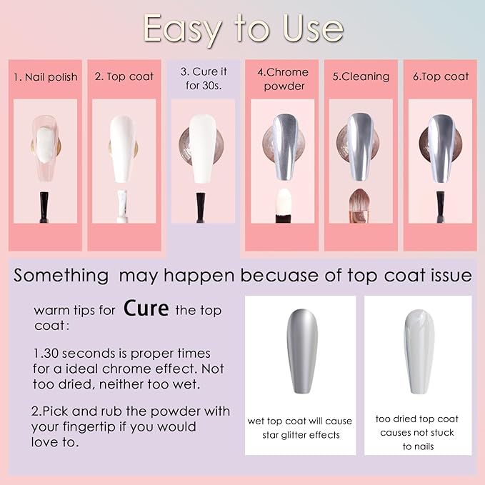 - Ultra Excellent Texture: The gold nail chrome powder is fine and smooth without particles feeling, so you can make your nails exquisite with an amazing mirror effect. And the pink chrome nail powder is non-toxic, more durable, and environmentally friendly, which does not harm your nails and skin, using it more at ease. Make mirror effects for your nails with our excellent equality chrome powder set.