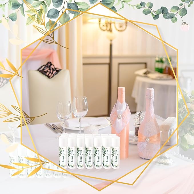 - Sweet Gift Choice: these lip balms printed with the words "Thank You for celebrating with us" and green eucalyptus leaves, suitable as wedding favors, baby shower gifts, gender reveal party gifts, etc, and surprise and delight your guests with this thoughtful gift