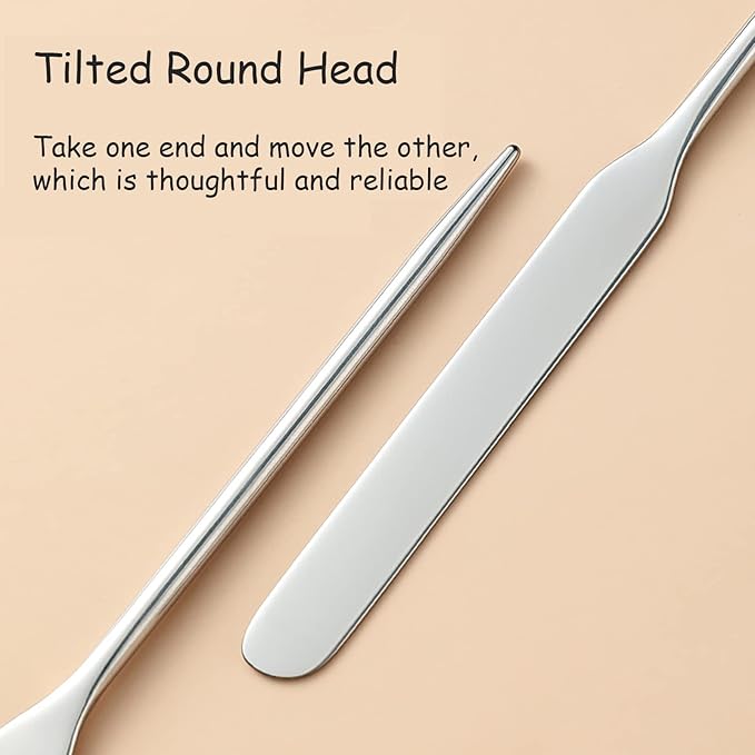 - 【MAKEUP ARTIST MUST HAVES】This stainless steel makeup spatula can be used for mixing foundation to create a right foundation color for you. It is also suitable for blending lipstick or eye shadow, nail art paint, gels, nail polishes, pigment, eyelash glue etc.