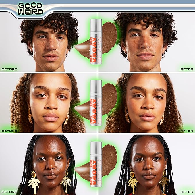 - Versatile: Use it as a highlighter makeup to accentuate your features or as a liquid bronzer for overall warmth. With the Back from Vacay Bronzer, you control the level of glow. Get ready to look good, feel better, and stay weird with Good Weird.