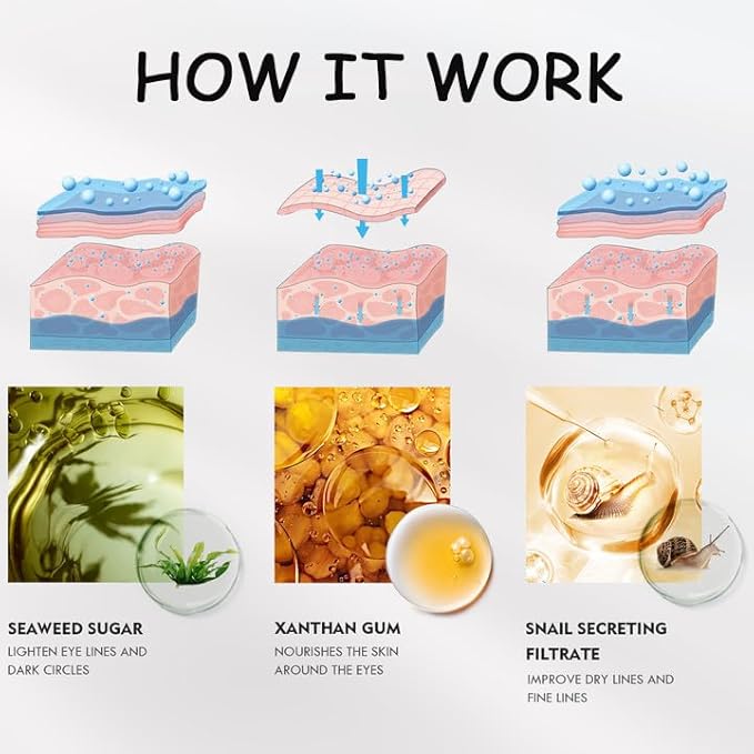 - Applicable skin: Suitable for men and women, especially for people who often work late, often stay up late, or those with wrinkles under the eyes, or often do spa care.Skin health is particularly important: No matter what skincare products you got from the market, we recommend to test the root of ears at the first use, after no abnormal reactions after 20 minutes, and then use the product normally; If there is any discomfort during use, please stop using immediately.