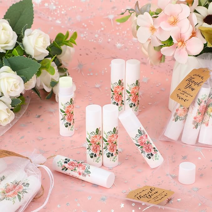 - Floral Thank You Themed Lip Balm Gifts: these bulk moisturizing lip balm products are beautiful floral design, and have good smell, everyone will love these lip balm, our lip balm are suitable for bridal shower favors, wedding gifts, bachelorette party favors, small business thank you gifts, employee appreciation gifts, office gifts, birthday party favors
