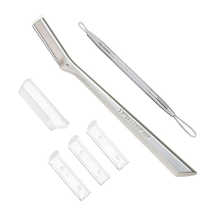 - Facial Razor: Provides easy removal of peach fuzz and gentle exfoliation of dull, dead skin. Stainless steel blades are durable and easy to clean. For optimal performance, replace razor blades every 2 - 3 months or as needed; 3 replacement blades included. Safety cap included for storage.