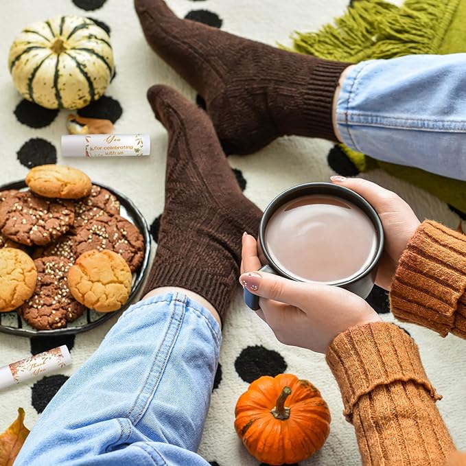 Dunzy 50 Pcs Thank You Gift Lip Balm Bulk Baby Shower Party Favors Bridal Shower Favor Lip Care with Assorted Fruit Flavors Thank You Lipstick for Guest Basket Gift Stuffer (Pumpkin)