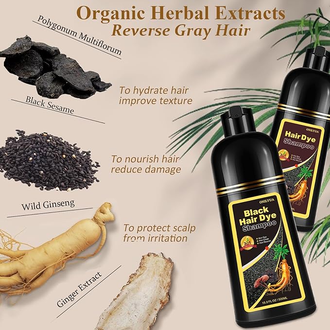 - 【Cleanse And Condition While You Color】: Our magic 3-in-1 hair color shampoo colors, cleanses, and conditions your tresses all at once! Make your hair soft, shiny and manageable after dyeing. Infused with herbal ingredients like Polygonum Multiflorum to anti-gray hair; Ginseng to nourish hair follicles. (Perfect gifts for parents and elders)