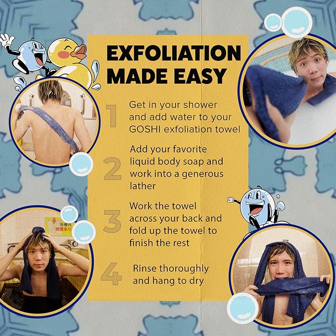 - Exfoliation Made Easy: Get ready to feel the softest and cleanest you’ve ever been. The GOSHI exfoliating towel is a game-changing Japanese shower towel and body scrubber exfoliator with more substantial surface area coverage, allowing you to clean hard-to-reach areas without the cumbersome parts that can ruin your entire shower experience. The perfect replacement for your loofah, glove, scrub brush, and even your old towel brand.