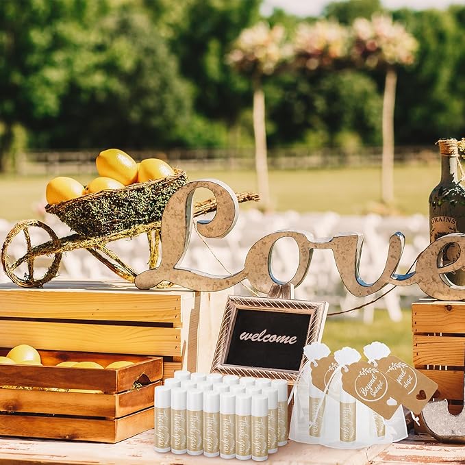 - Rich Gift Packaging: this item contains 50 pieces of thank you lip balms, designed in kraft paper style; Each lip balm is printed with the words [thank you for celebrating with us], which expresses the deep gratitude to the guests; Whether it's a wedding thank you gift or a baby shower thank you gift, there's plenty in this gift pack to meet your gifting needs