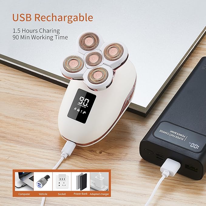 - 【Powerful & Convenient】Powered lithium battery womens razors provide long-lasting performance for up to 90 min with a 1.5 Hr USB charging time. Long press 3 seconds of pubic hair trimmer women to trigger travel lock avoiding accidental power consumption. LED display shows the remaining working time.
