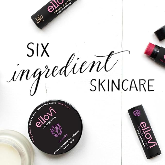 Natural Lip Butter Lip Balm - Lavender - Pure Enough to Eat - Made With Just 6 Vegan Ingredients - Moisturizing Lip Care for All Day Hydration (4-Pack)