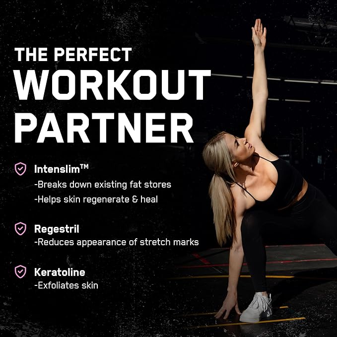 - Tone Your Glutes, Hips & Thighs: Intenslim, a patented fast-acting combination of stimulant-free topical caffeine and herbal and floral extracts, is designed to break down existing fat stores and help your skin regenerate. Buns of Steel doubles down on skin health with Regestril to prevent and reduce stretch marks and Keratoline to exfoliate skin.