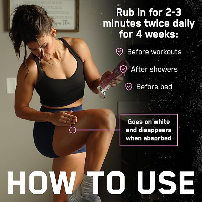- Non-Greasy & Easy To Use: Our non-greasy cream goes on white and rubs in after 2-3 minutes. It’s non-oil-based so it won’t stain your favorite gym clothes. For optimal results, apply twice per day, 15 minutes before a workout, after showering, and/or before bed for at least 4 weeks.