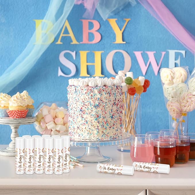 - Assorted Flavors: these boho baby shower lipsticks are designed with 5 different flavors, including mint, vanilla, green tea, pomegranate and mango, sufficient for you to choose according to your preference, and each lipstick is labelled, convenient for you to recognize