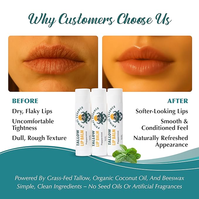- All Natural Formula: Made without seed oils or artificial fragrances, our tallow lip balms provide simple, effective care with a thoughtfully selected blend