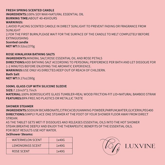 - Immersive Spa-Like Experience: With bath steamers, bath salts and scented candles, our gift box for women promises an indulging spa-like experience, where your mom can sip her wine from our tumbler and let her mind and body be cleansed by aromatherapy and a relaxing, warm bath!