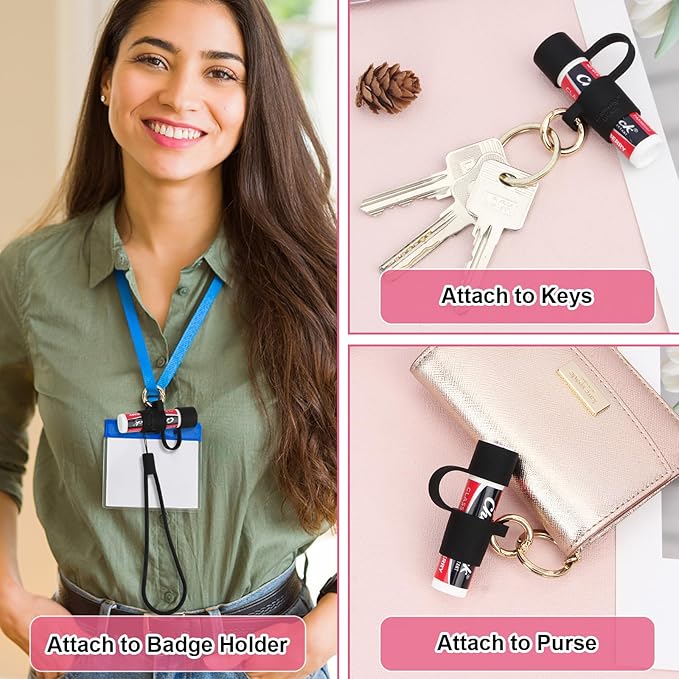 - 👍 FIT STANDARD SIZE LIP BALMS - The size of chapstick holder keychain measures 0.6 inches (inner diameter) that is snugly fit for all standard size lip balms. Compatible with Burt's Bees, ChapStick, Blistex, Dr. Dan's Cortibalm, Carmex, etc.