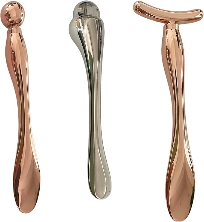 - 【ABSORPTION】: The face massage tools are mini design for the face, one end of the spatula can be used for night and day creams, and the 3D roller head, Y head and round head can be used for massage to reduce eye puffiness and tighten the skin